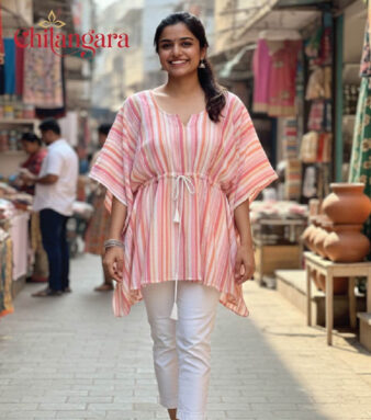 Pastel Stripe Kaftan Short Top | Linen Rayon Blend