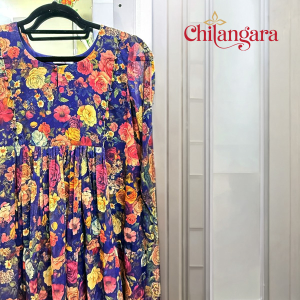 Upgrade your wardrobe with this stylish blue chiffon frock, designed for women who love elegance with comfort. Crafted from lightweight chiffon fabric, this frock offers a soft, flowy feel—perfect for both casual outings and festive occasions.