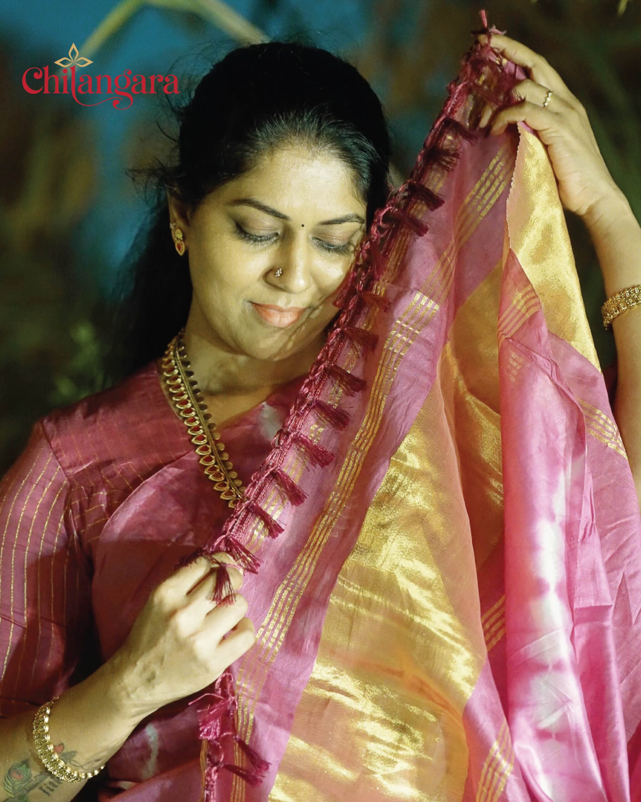 Festive Pink Silk Saree with Tassels