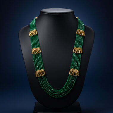 Royal Elephant Emerald Green Bead Necklace