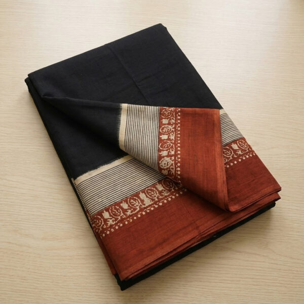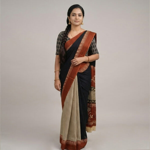 Be the first to review “Rust and Black Dual-Tone Cotton Saree with Geometric Ikat Blouse” Cancel reply