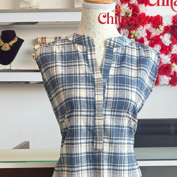 Upgrade your everyday wardrobe with this stylish sleeveless check dress, designed for comfort and effortless elegance. Featuring a smart neckline with a Chinese collar, this dress offers a modern yet minimal look perfect for daily wear.