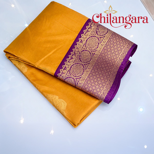 Be the first to review “Yellow & Purple Kanchipuram Silk Saree with Zari Work – Elegant Traditional Look” Cancel reply